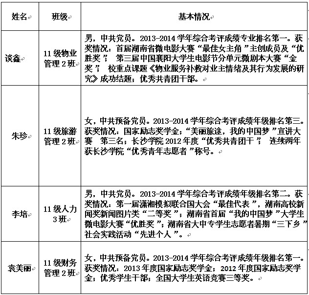 长沙学院经济与管理系2013—2014学年国家奖学金