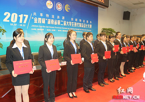 22日决赛颁奖典礼上,湖南省教育厅副厅长葛建中等领导给获奖个人和获奖单位进行颁奖。中南大学、长沙理工大学、湖南科技大学、中南林业科技大学等20所高校的53支报名队伍经过预选赛、初赛等层层选拔后,17所高校的33支队伍突出重围,进入最终的决赛。