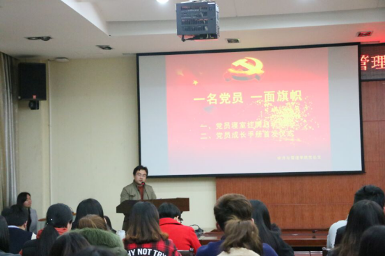 会议伊始,院党总支副书记王永启发言。王书记就本次活动进行了简要介绍。他表示,“党员寝室挂牌”活动目的是通过党员寝室的文明创建,以点带面,进一步提升全院的宿舍文明建设。凡有党员的寝室都要在门口贴上标牌并标注党员姓名,这既是勉励也是鞭策,也是党组织布置的一项重要任务。其次,《经济与管理学院党员成长手册》发放对象是预备党员,主要内容就是如实记录预备党员在培养考察期间,在学习、社会实践、思想进步、个人成长等过程中的表现,希望各位党员、预备党员积极贯彻,认真执行,让党员先锋模范的旗帜闪亮飘扬。