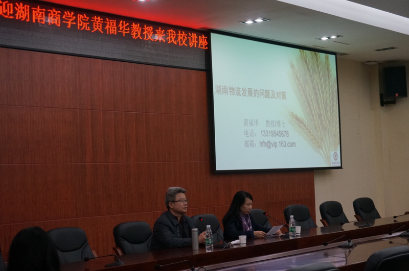 11月7日上午10点,湖南商学院工商管理学院院长黄福华教授应邀在学校图书馆一楼会议室为经济与管理系师生带来了一场题为“湖南物流发展的问题及对策”的讲座。经济与管理系总支书记李福英教授出席并主持了讲座,来自经济与管理系物流管理专业的师生到场聆听了黄教授的报告。