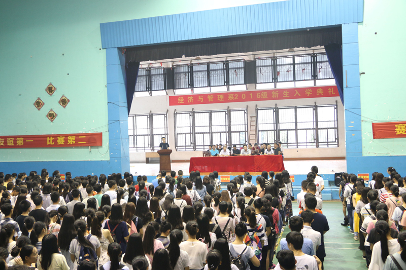 9月12日八点,经济与管理系2016级新生开学典礼在永康体育馆篮球馆隆重举行。经济与管理系系领导、各教研室、实验室主任、专业教师、辅导员出席了本次开学典礼。