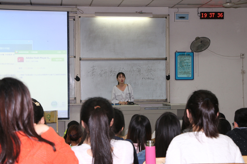 在黄敬茹老师就本次分享会的流程做了大致介绍之后,系党总支副书记王永启作重要讲话。他对12级考研学生取得的优异成绩给予了高度肯定,简单分析了当下的考研形势,鼓励同学们积极考研,努力拼搏,奋斗不止,并对此次交流会的成功举办致以衷心祝愿。