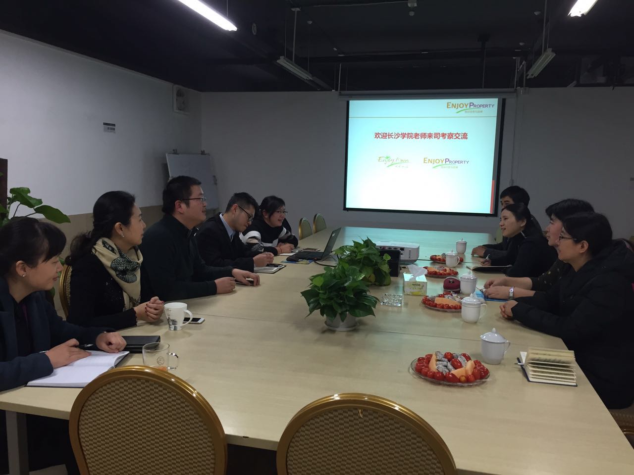 为进一步加强物业管理专业教学、科研与企业的深度融合,响应教育部、发改委、财政部下发的《关于引导部分地方普通本科高校向应用型转变的指导意见》(以下简称《指导意见》),更好地服务地方经济和社会发展,2015年11月30日,物业管理教研室缪悦博士、黄蕾博士、李海波老师、柳易林老师和李素娟老师实地走访了湖南郡原物业服务有限公司,该公司成立于2007年,目前具有国家物业管理企业二级资质,高层管理人员均由来自于上海、杭州从事多年高端物业和高星级酒店管理的各工种专业人士组成,他们在多年的高端物业与酒店管理方面积累了丰富的管理经验,致力于在中国新型城镇化的背景下,以“欢乐、人文、邻里、发展、健康、时间、便捷”为原则,借鉴新加坡卫星镇的规划理念和治理经验,营造符合当代中国民众生活需求的“城镇文化生活空间”。