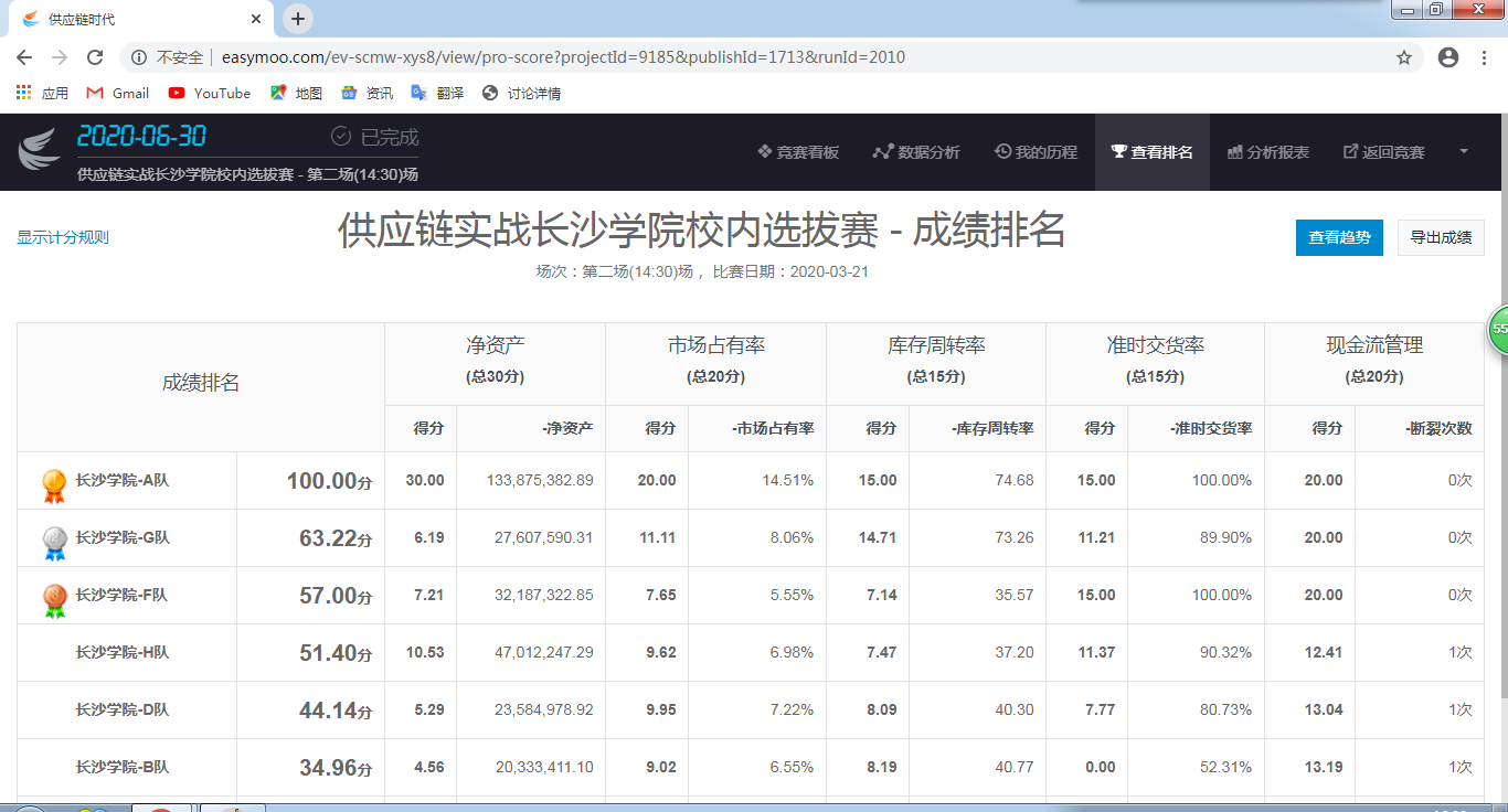 长沙学院第一届全国供应链大赛校内选拔赛各队获奖情况
