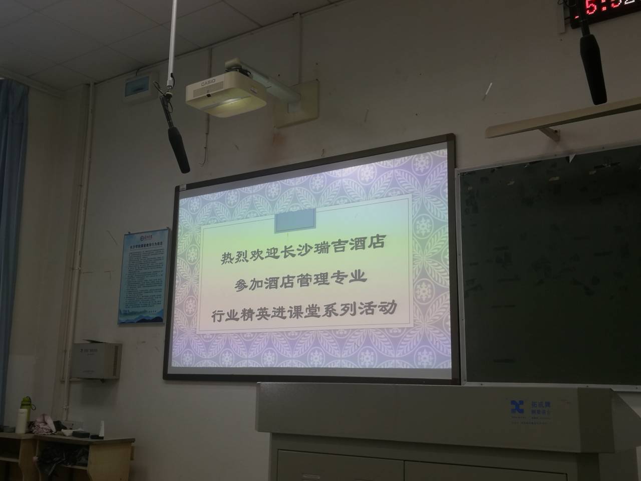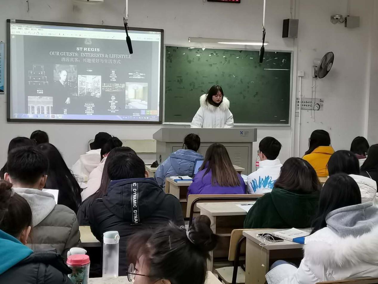 2020年12月17日下午,经我院酒店管理教研室统一协调,对接嘉宾,在涵虚楼C3702教室顺利开展一项别开生面的活动。酒店管理专业18级全体同学在《酒店前厅与客房管理》的课堂上迎来了一位特别的嘉宾——长沙瑞吉酒店管家王一萍。这标志着本学期酒店管理专业“行业精英进课堂”活动拉开序幕。本次行业精英进课堂活动由酒店管理教研室主办,出席本次活动的有酒店教研室龚敏博士及18酒店管理1-2班全体同学。
