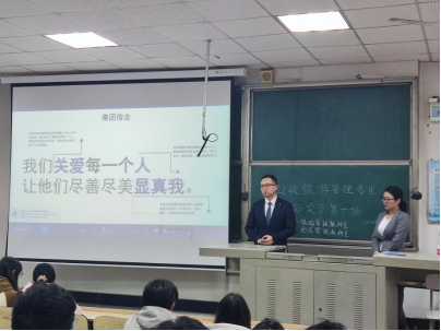 认知实习是教学计划的重要部分,也是培养大学生解决实际问题能力的第二课堂。2022年11月15日下午,涵虚楼A多3教室掌声雷动。经我院旅游管理教研室和酒店管理教研室统一协调、对接,在涵虚楼A多3教室顺利开展了2022级旅游管理专业认知实习系列活动。本次活动的主讲嘉宾为长沙君悦酒店人力资源总监孙俊先生与人事经理李慧女士。这标志着本学期旅游管理专业认知实习活动正式拉开了序幕。出席本次活动的有酒店管理教研室吴壮益老师以及2022级旅游管理专业1-3班全体同学。