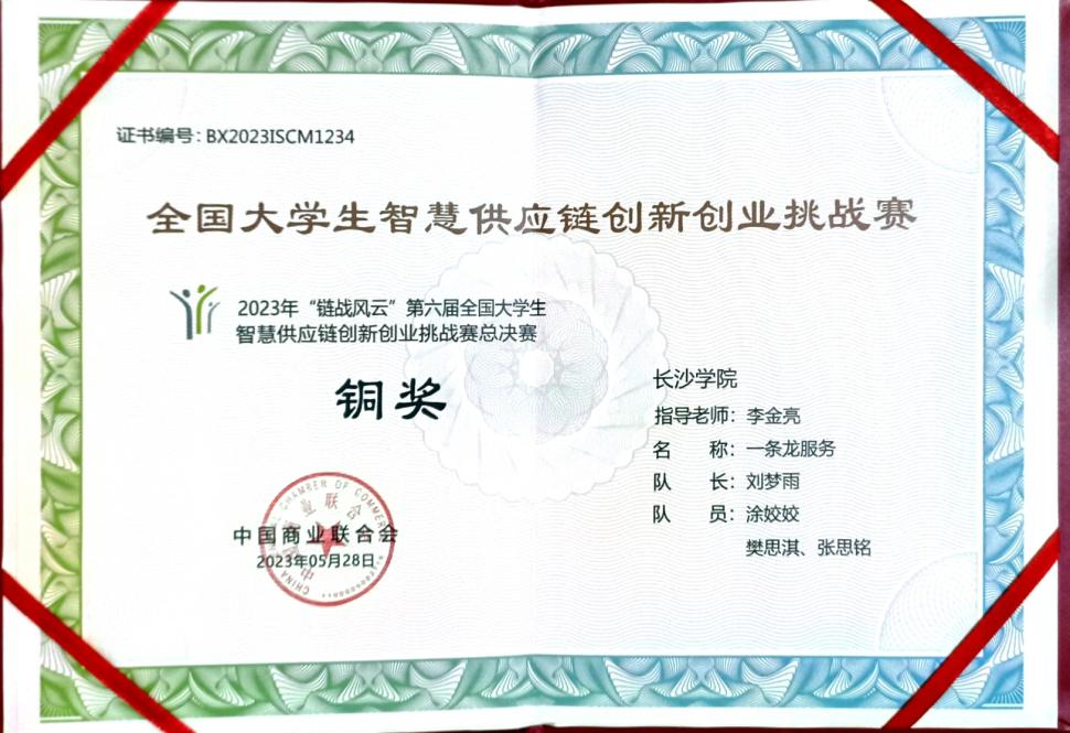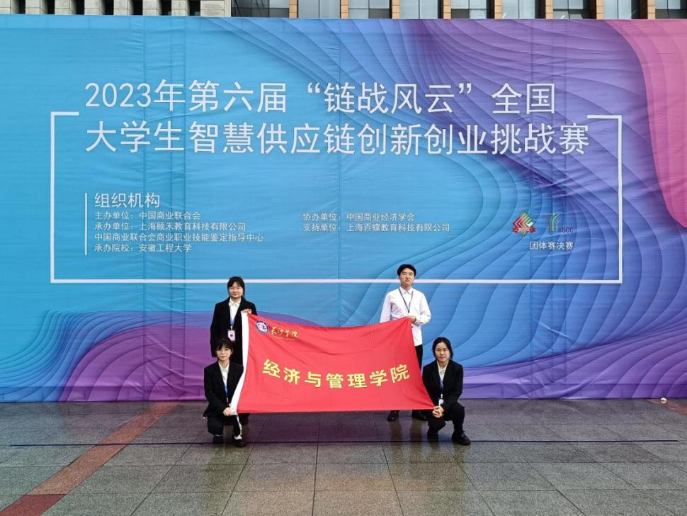 5月28日,由中国商业联合会主办,上海颐禾教育科技有限公司、中国商业联合会商业职业技能鉴定指导中心、安徽工程大学、中国商业经济学会以及上海百蝶教育科技有限公司共同承办第六届“链战风云”全国大学生智慧供应链创新创业挑战赛在安徽工程大学落下帷幕。有李金亮老师指导,学生刘梦雨、涂姣姣、樊思淇、张思铭组成的队伍“一条龙服务”在比赛中取得优秀的成绩,斩获铜奖。