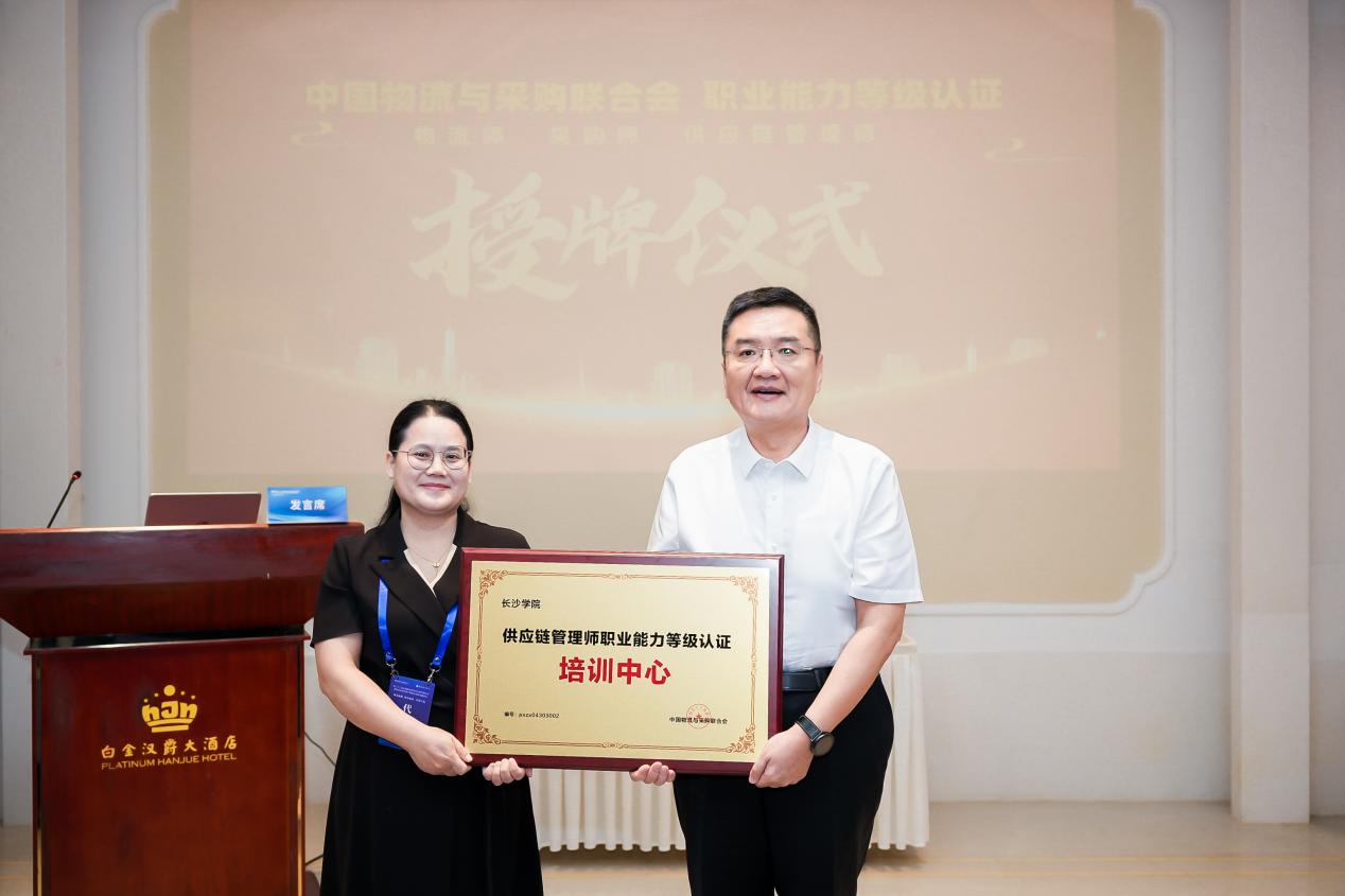 2023年8月10日,长沙学院物流师、采购师、供应链管理师认证培训中心授牌仪式在南京顺利举行。中国物流与采购联合会副秘书长郭肇明,长沙学院经济与管理学院教授杨芳出席授牌仪式。