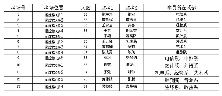 二、考试地点:涵虚楼A1-A4,B1-B5,C1-C4(见附件一);