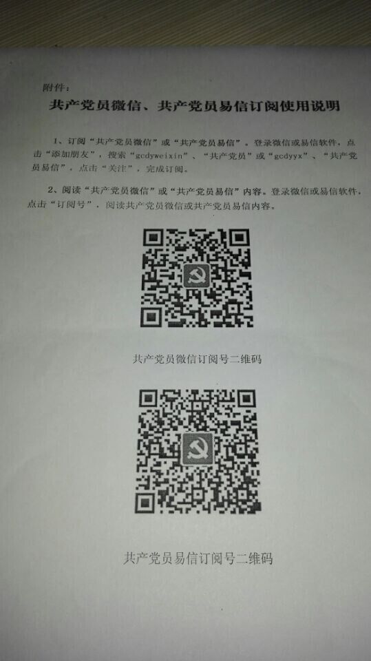根据中央组织部和省委组织部《关于发动广大党员订阅使用共产党员微信、共产党员易信的通知》精神,为进一步扩大其覆盖面影响力,请全省高校积极组织动员,党务部门同志、基层党组织书记带头订阅,并通过校园网、显示屏公布等途径,扎实发动本校广大师生党员、预备党员、入党积极分子以及其他青年学生订阅使用共产党员微信、共产党员易信(订阅使用说明见下图)。