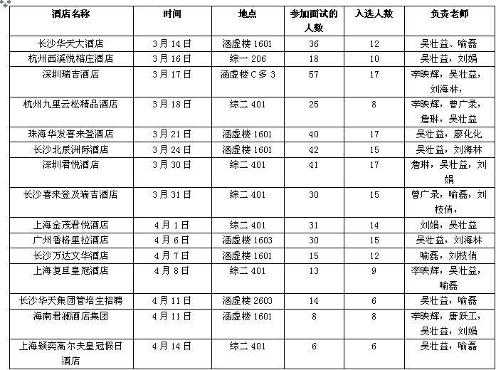 以人为本,用心做好用人单位和学生间的桥梁——我系酒店管理教研室组织15场酒店行业专场招聘选拔会