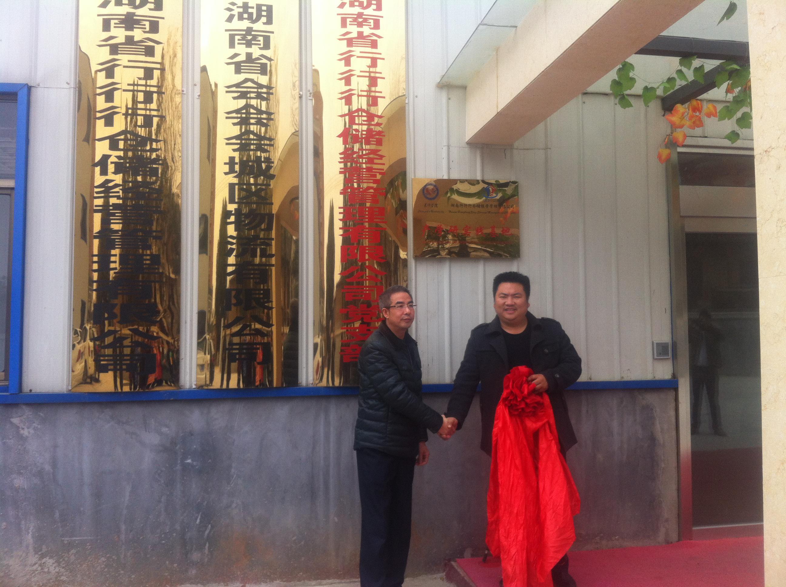 经济与管理系李映辉主任与湖南行行行仓储经营管理有限公司吴海洋总经理在“产学研实践基地协议书”上签字,并为产学研基地揭牌。李映辉主任代表长沙学院经管系向湖南行行行仓储经营管理有限公司董事长阳晓湖先生颁发特聘教授证书。