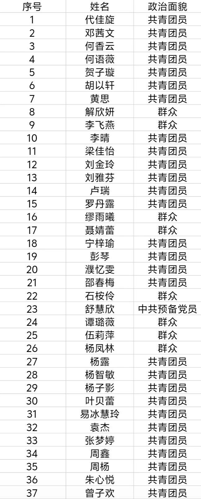 长沙学院第十届学生代表大会经济与管理学院代表团代表名单