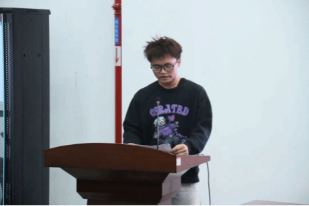 运动员代表杨俊在发言中表达了荣幸与激动。他指出,校运会是展现风采、凝聚精神的重要舞台。他回顾了训练中的汗水与坚持,并代表全体运动员承诺:恪守体育精神,尊重规则、对手与裁判;全力以赴,挑战自我,突破极限;心系团队,为学院荣誉而战。他也感谢学院提供的平台及老师、后勤同学的付出,并呼吁全体运动员用热血点燃赛场,预祝校运会圆满成功,健儿们载誉而归。