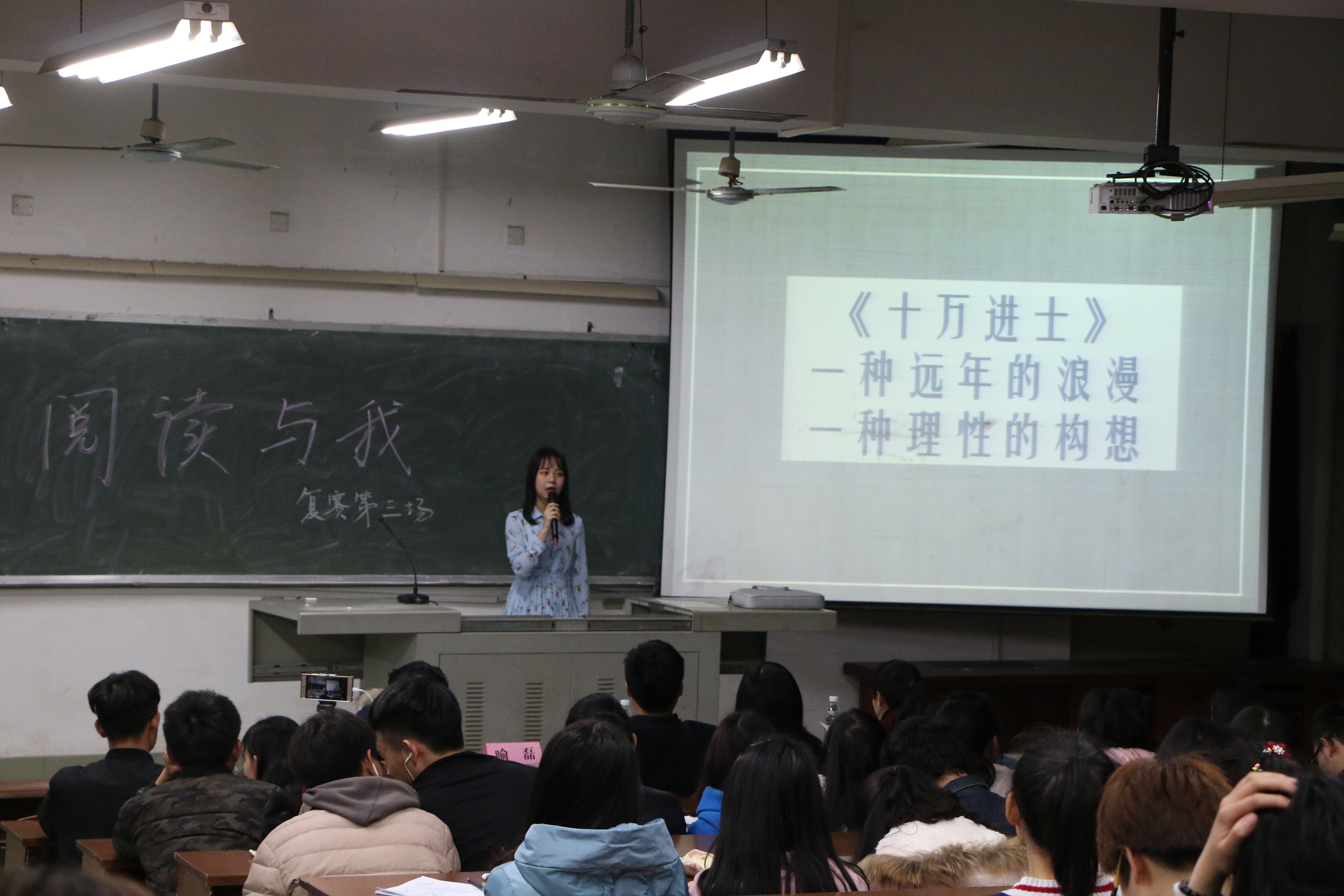 现场气氛热烈,选手准备充分,观众也怀着激动的心情期待着参赛选手的精彩表现。在主持人开场介绍比赛主题和比赛评委后,比赛正式开始。此次比赛共16名选手参赛,比赛选手以演讲的方式搭配ppt进行分享自己喜欢的书籍。在比赛过程中,首位参赛选手是来自16财务4班的罗雄雄,他分享的是卡耐基《人性的弱点》,这本成功经典让我们明白每个人有无限潜力,创造辉煌的人生。《心静了,世界也就静了》、《生活总会厚待努力的人》、《世界上的另一个你》等让我们在平静中感受到震撼的力量。在《货币战争》中体会到枯燥的文字背后的美,在《红楼梦》中哀叹其中的凄美故事,在《我的前半生》中感悟溥仪在那段历史中的经历。从《重返狼群》与《牧羊少年奇幻之旅》中经历了一场冒险励志之旅,《高效率法则》从学习的角度告诉我们如何提高效率,《大家都有病》从新颖的角度带我们徜徉“病态”的世界,《正念的奇迹》让我们在浮躁的心中体会到禅宗的静谧。此外还有《山居笔记》、《平凡的世界》、《1984》、《追风筝的人》等最现实最直击心灵的作品也给人以深思。