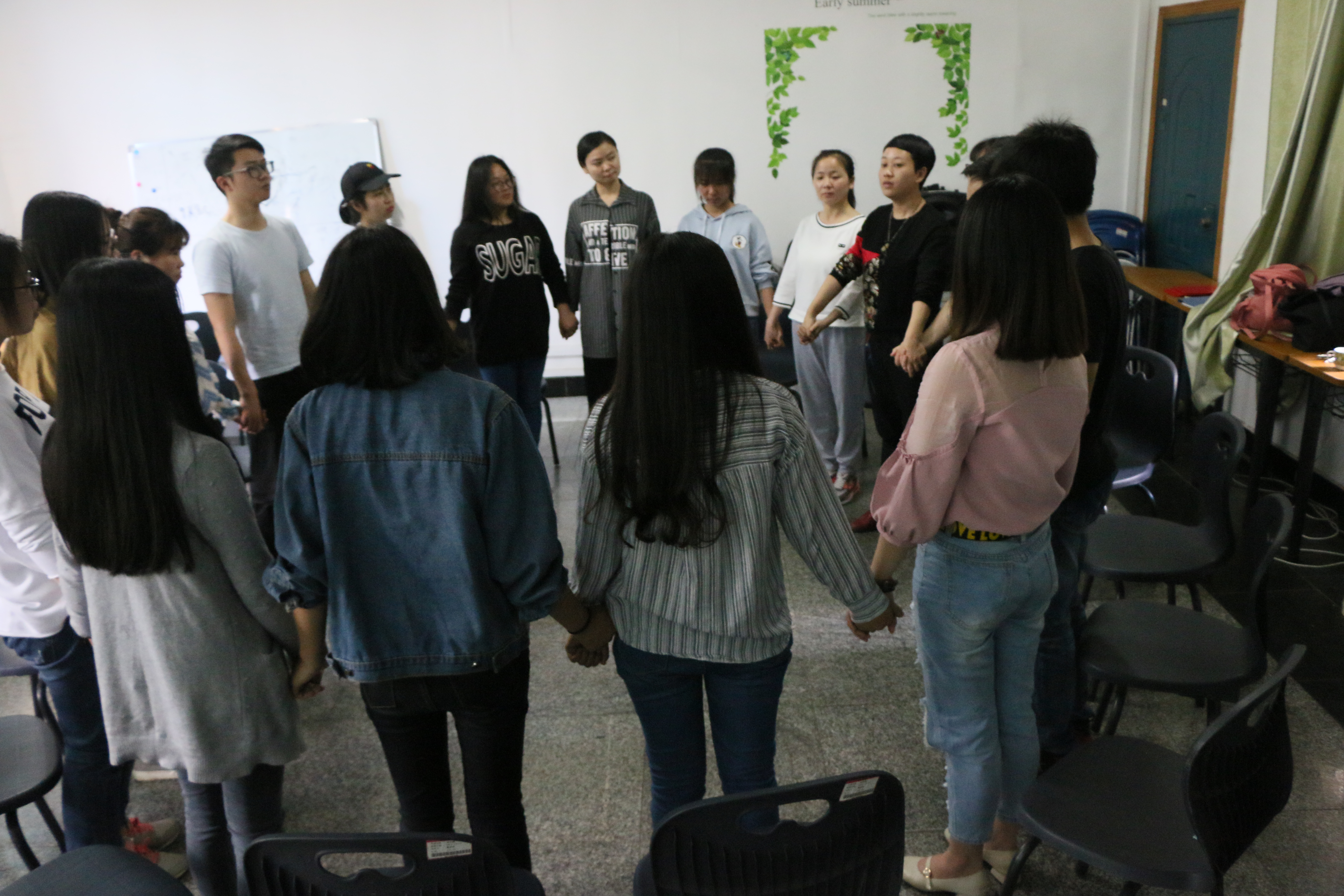 中午12点30分,各班心委到齐。培训开始前,大家落座之后围成一圈,依次进行自我介绍,让大家互相有一个初步的认识。首先,周欣老师阐明了这是一次团体活动的体验式活动,主要是帮助大家学会如何带领班级同学开展类似的班级活动。之后,周老师简单介绍了团体、团体辅导和团体咨询的联系与区别。从团体咨询的起源开始,周老师讲述了20世纪初美国内科医生普拉特的开创性工作,也谈到了团体咨询的现状,直到20世纪90年代,我国大陆开始发展与本土化探索。最后,周老师把重点放在大学生团体工作的重要性和必要性上。