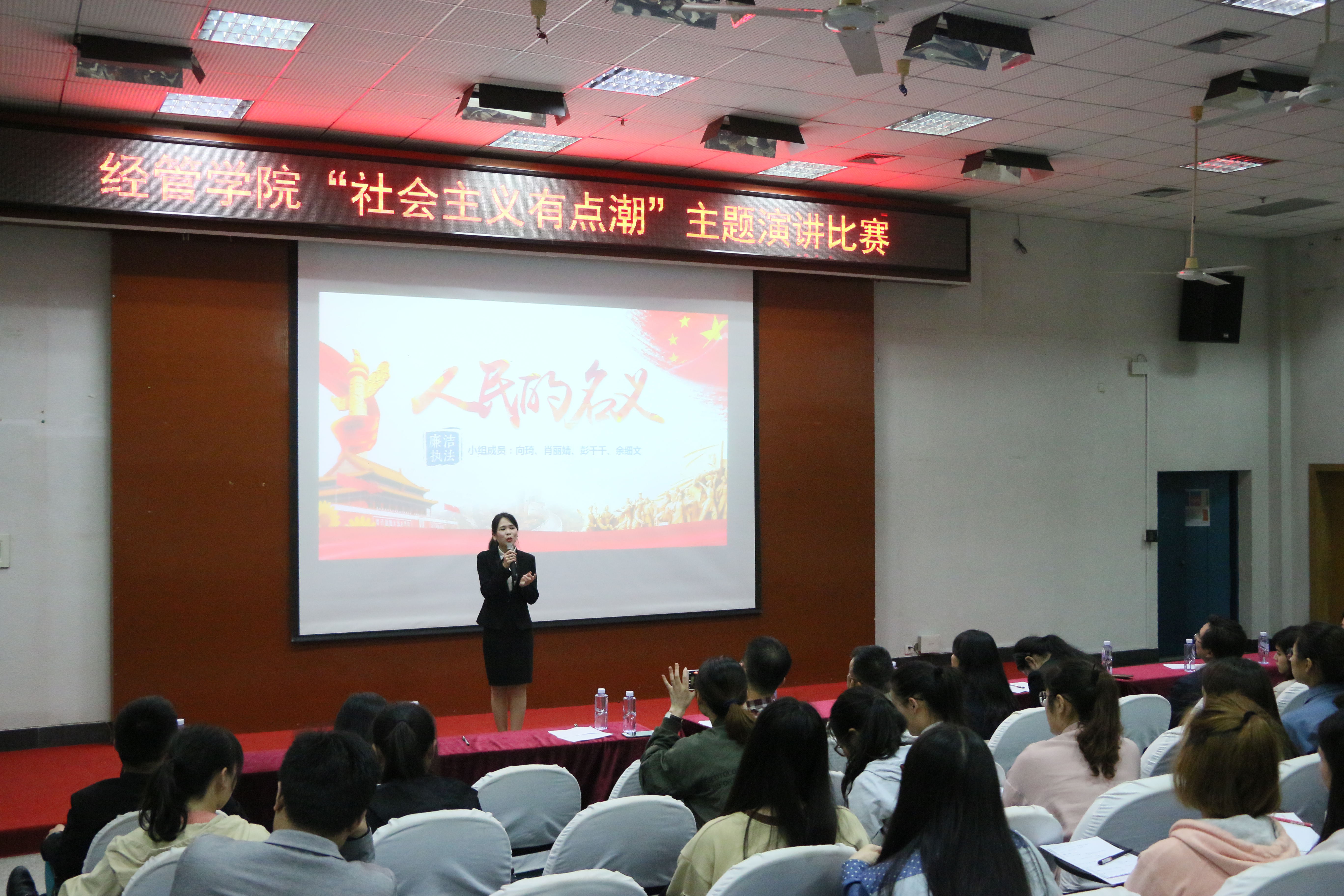 据悉,本次演讲比赛先以8个学生党支部为单位组织完成了初赛,学生党员、预备党员人人参与,非学生党员也积极加入,选手们畅谈和表达对科学社会主义特别是对中国特色社会主义“四个自信”的认识和体会,充分展现了党员同志在青年思想引领方面的模范带头作用。同学们参与热情高,效果明显。经管院党总支注重氛围营造,赛前在图书馆大厅设置摆点,进行了“青春喜迎换十九大,社会主义有点潮”横幅签名活动,用自己的实际行动欢迎党的十九大,让科学社会主义的理论在校园内“潮”起来。