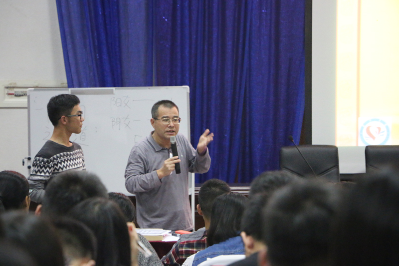 讲座伊始,王永启副书记致开幕词,表达了对新生干事的深切的期望与鼓励,同时简要介绍了李云龙教授,并表达了对李教授的欢迎与感谢。进而讲座正式开始,首先,李教授让在座所有学生干部找出本次讲座主题中最重要的两个字,极大地调动了全体师生参与的积极性,他以易经作为主讲内容,给同学们普及了大量的易经知识,借太极中的阴阳相融、阴阳相调等道理使同学们对世间万物有着普遍的理解,并借此使提醒同学们正视大学生活中将要面对的各种情况。接着李教授向同学们普及了大量的太极八卦知识,转而又针对社会现实提出了自己的独特见解,他不赞同在我们大多数人眼里很正确的两句话,即“孩子不能输在起跑线上,上了大学就轻松了”,他说:“人生是条马拉松,起跑线的影响已经变得越来越小”,“当很多人在孩子们高中拼命学习时说,努力吧,到了大学就轻松了,其实真的到了大学,很多人会发现大学比高中更忙”。而对于现在大学生在学校生活中的生活态度,他提出并详细解释了“仁爱”、“内观”、“感恩”等词语,同时也感言“我希望每个学生在一天的结束时能让自己清空,让每一天的自己都能从零开始”。培训讲座结束,李教授用自己纯朴独特的方式给予了同学们一场有着极大教育意义的讲座,获得了满场热烈的掌声。最后王永启副书记简单地做了结尾,本次培训讲座圆满成功。