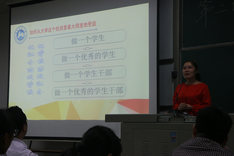 10月11日晚7点,由湖南师范大学学工办主任罗艳老师主讲的经管系学生干部第二次培训在涵虚楼A多2顺利召开,本次培训的主题是“如何做好一名学生干部”。经管系党总支副书记王永启,以及经管系的年级辅导员出席本次讲座。本次讲座由经管系辅导员向伟老师主持。来此经管系第三届学生会部长、干事,以及14、15、16级班长、团支书参加了此次培训。
