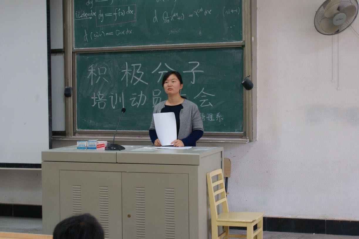 本次动员大会围绕“如何做一名合格的入党积极分子”的主题召开,会议伊始,钱文良老师发表讲话。首先,她强调了作为一名入党积极分子应该做些什么的问题,比如上党课时要做好笔记,提前写好发言提纲,每次上党课不能迟到,更不能旷课,听党课要有组织、有纪律,不要在教室大声喧哗,要把经管系的精神风貌展现出来等等。其次,钱老师告知在座的入党积极分子,党课结束后需通过考试,考试成绩合格者才能颁发结业证书。最后,钱老师鼓励同学们要严格要求自己,积极向党组织靠拢,做一名优秀的入党积极分子。