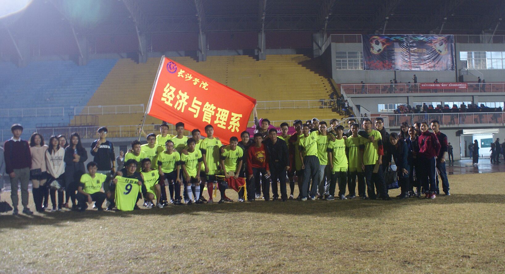 11月15日晚7:00,长沙学院“助学杯”足球联赛决赛激情开赛。本场比赛是经管系对阵电信系。暮色降临,比赛还未开始,队员们个个斗志昂扬、蓄势待发,在场的观众殷切期待双方的精彩对决。