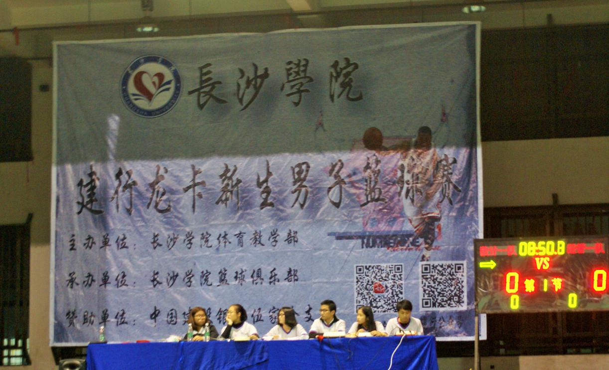 为丰富学生课余文化生活,创造展现自我的机会,增强班集凝聚力,11月17日晚七点,由中国建设银行伍家岭支行倾情赞助、长沙学院体育教学部主办、长沙学院篮球俱乐部承办的“建行龙卡”新生男子篮球赛在永康体育馆激情开赛。经管系和数计系的篮球健儿在同学们阵阵喝彩声中火热开场。