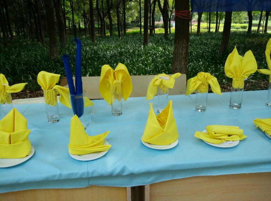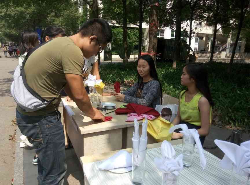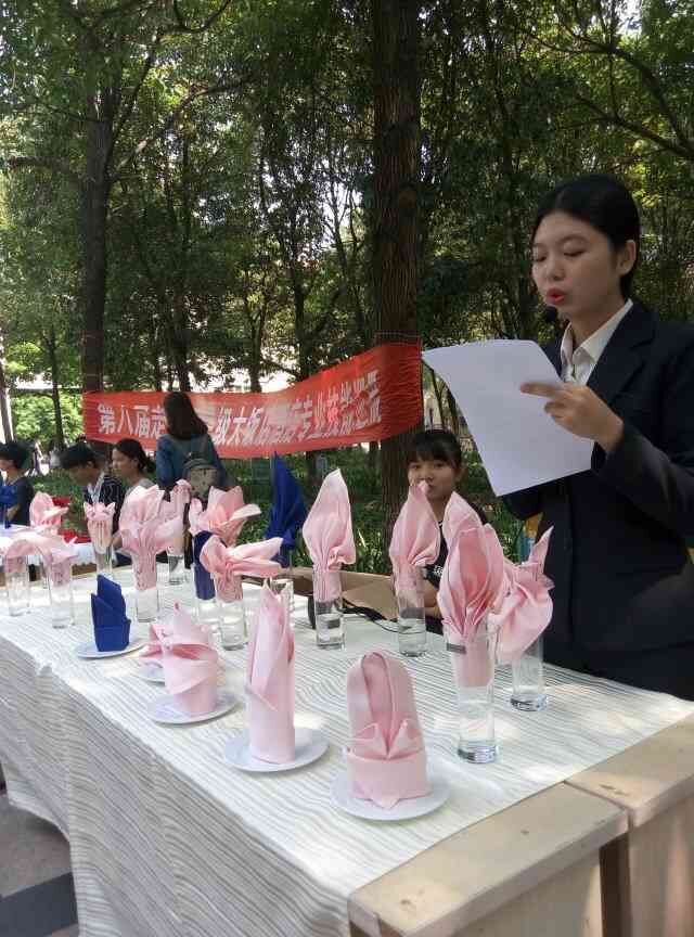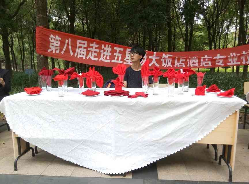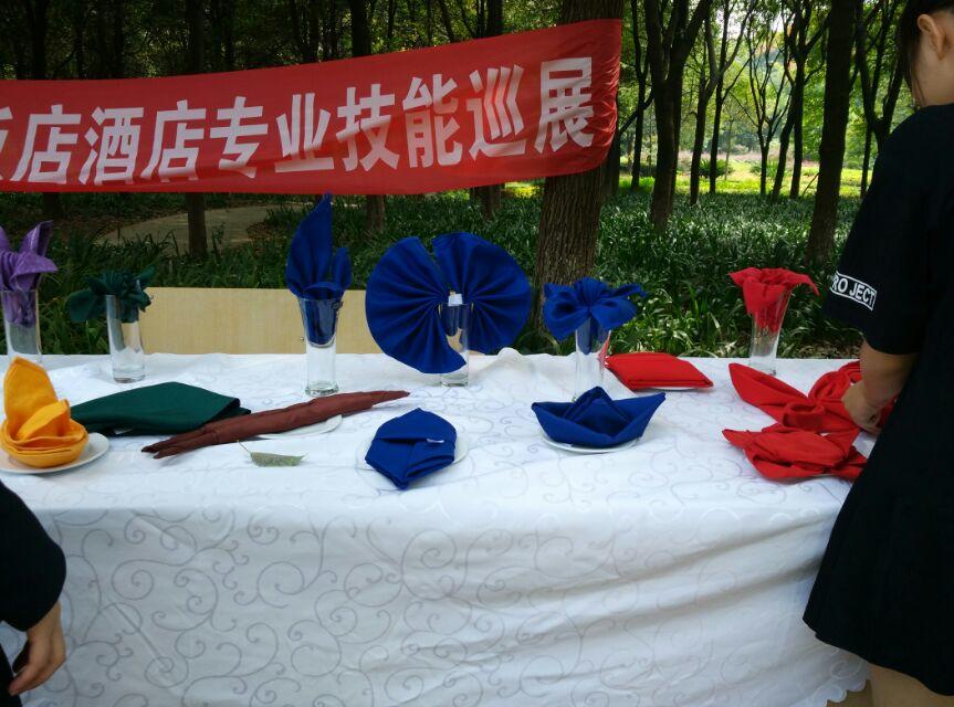 9月29日9点,第8届“走进五星大饭店”——酒店行业技能风采巡展第二站的餐巾折花展在涵虚楼正门对面、馨园入口处如期顺利举行。