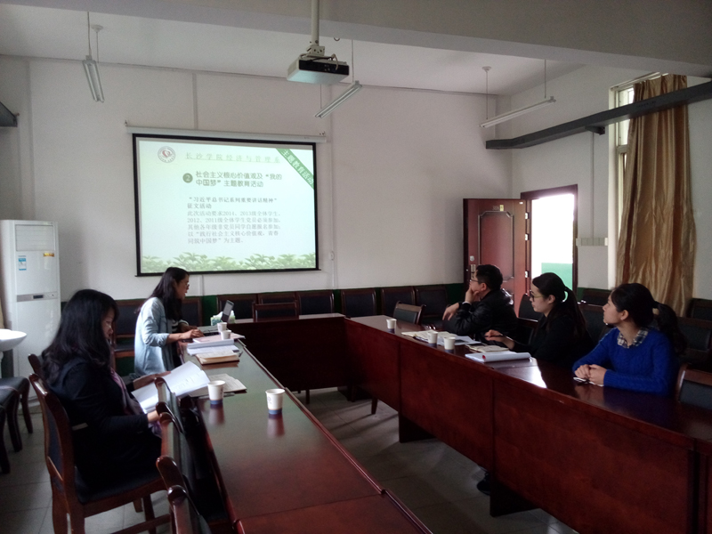 经管系党总支书记李福英教授就加强团学工作“点”、“线”、“面”的结合,实现“三打通”进行了详细的阐述,即为实现人才培养全过程参与,在思想政治教育方面实现党建和团建内容上打通;在学生管理、教学管理、科研管理上横向打通;从入学到毕业时间上实现纵向打通,大一注重生活学习适应教育、大二注重学习方法思维培养、大三注重专业知识提升、大四鼓励学生创业。陈龙山老师就我系团学工作的开展情况以及未来创新工作的打算作了详细汇报。听完汇报后,校团委徐远超书记指出经管系团学工作思路清晰,紧密结合专业特色,特别是在创新创业工作方面稳扎稳打已经取得了一定成绩,要再接再厉,营造创新创业氛围,推出大学生创业典型,形成经管系团学工作特色。