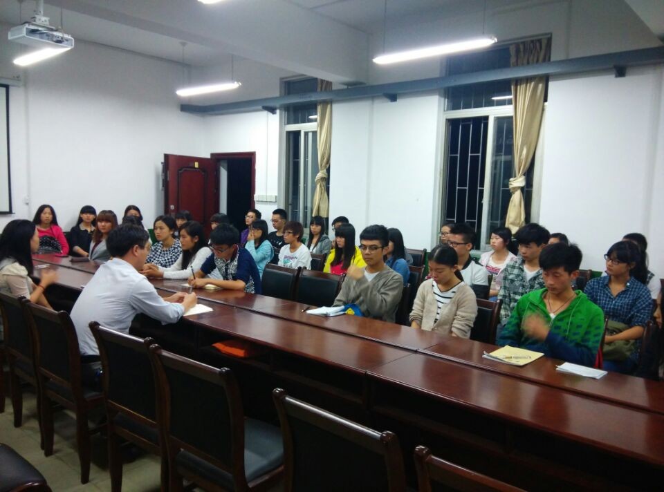 10月16日晚,在系党总支副书记王永启老师的主持下,长沙学院经济与管理系2014级新生代表座谈会在系会议室308举行。新生辅导员李素娟老师和向伟老师出席会议。