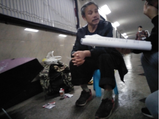 活动当天阴雨绵绵,这虽然对志愿者们寻找流浪者造成了阻碍,但却丝毫没有降低志愿者们火一般的热情。活动采取社工和志愿者搭档的形式分组,足迹遍布商业街的每一个角落。大家与流浪汉进行详细交流,询问他们的家庭状况、自身情况、是否需要衣物等,并积极帮助他们解决困难。