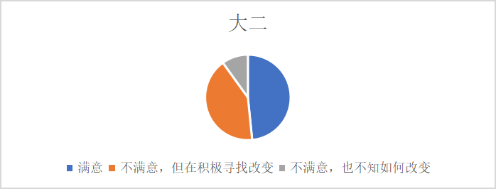 有850人对当前大学生活感到满意:其中大一249人,大二258人大三343人;646人对当前大学生活感到不满意,但在积极寻找改变:其中大一206人,大二222人,大三218人;158人感到不满意,也不知如何改变:其中大一50人,大二53人,大三55人。