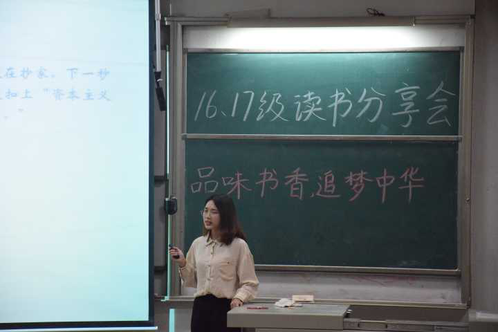 第一位上台选手17物流2班刘彩红同学向大家分享了一本经典好书——《追风筝的人》,伴随着轻柔的乐声和精彩的故事推进,大家慢慢地进入了状态,深切感受到小说中主人公之间体现的背叛与救赎。17级物业1班李坤强同学分享的《鬼谷子》让大家领略到了鬼谷先生言论中的哲学,一幅代表着中国古文明的历史画卷缓缓呈现在大家眼前。17级公管1班纪娜娜同学分享的《牛棚杂忆》使人印象深刻,精彩的讲解配合生动的肢体语言令大家拍手称赞,仿佛瞬间回到了那个混乱的文革年代。曾格同学和胡李丹同学带来的《激荡四十年》与本次分享会主题紧密贴合,带领大家了解了中国近几十年来的发展变化和辉煌成就,让人感慨中国梦的实现就在不远的将来。各位读书爱好者所分享的好书风格各异,妙趣横生,书中不同的故事由不同的选手一一讲述,从人情世故到社会百态,从追忆过去到展望未来,加上现场热情的掌声互动,本次分享会氛围热烈,来宾兴趣高涨。