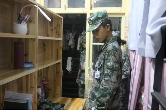 新生在教官检查过程中,会向教官询问自己的不懂之处。教官针对新生的问题进行细心解答,同时让新生动手操作,提高了新生的实践能力。离开寝室时,教官会将记录了寝室内务问题的纸张给予寝室长,让相应寝室进行针对性修改。