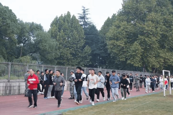 院党总支书记钟继军和院副书记陈龙山带领同学们晨跑
