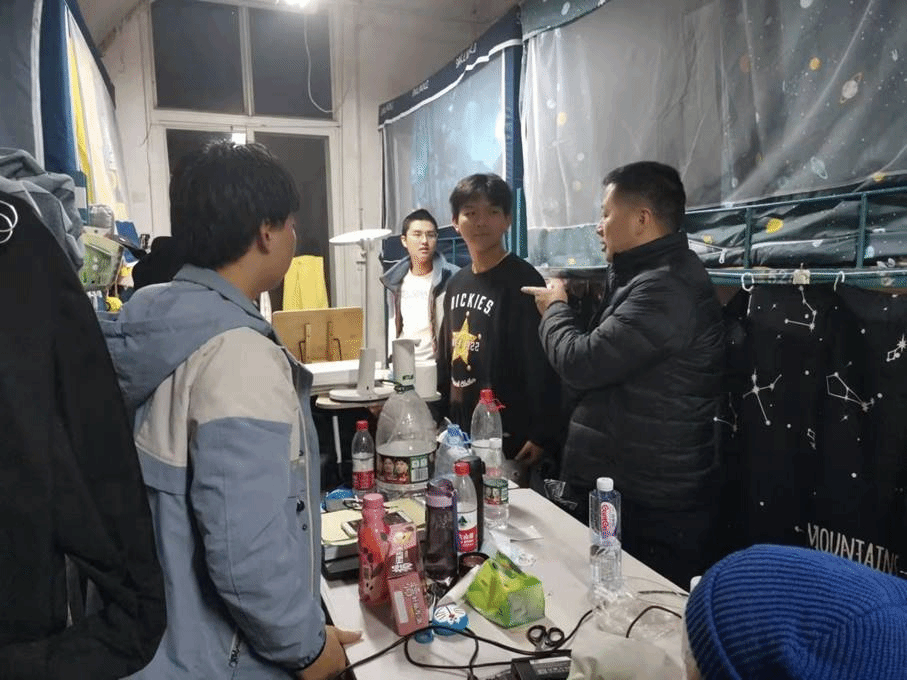 陈龙山副书记前往洪山八栋与同学们一起交流寝室内务整理与用电安全等问题,同时要求同学们自觉遵守学生寝室管理的相关规定,严禁使用违规电器,同学们离开宿舍断电,拔掉插线板。钱老师和何老师分别前往勤思和知行园区深入了解同学们的归寝情况,并与同学们亲切交流。