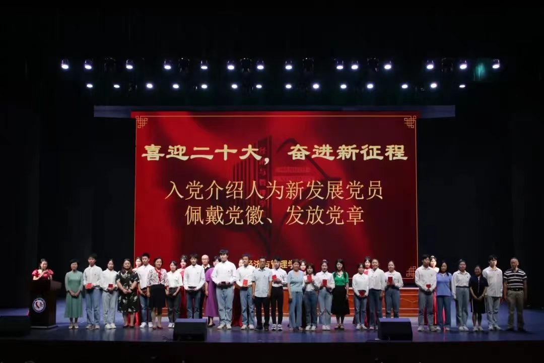 典礼现场还进行了新发展党员宣誓,入党介绍人为新发展党员佩戴党徽,发放党章,新发展党员郑重承诺:将时刻以一名优秀党员的标准严格要求自己,努力学习,树立共产党员先锋模范形象。