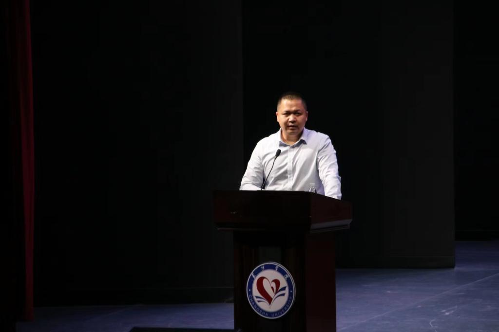 龙飞教授作为教师代表发言,他期望同学们能珍惜时光、严于律己,学会做人、全面发展,志存高远、追求卓越。