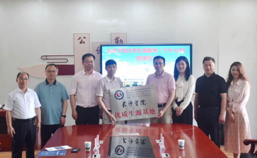 随后,长沙学院经济与管理学院和宁乡九中双方代表共同签订《长沙学院优质生源基地建设协议》,并举行“优质生源基地”揭牌仪式。
