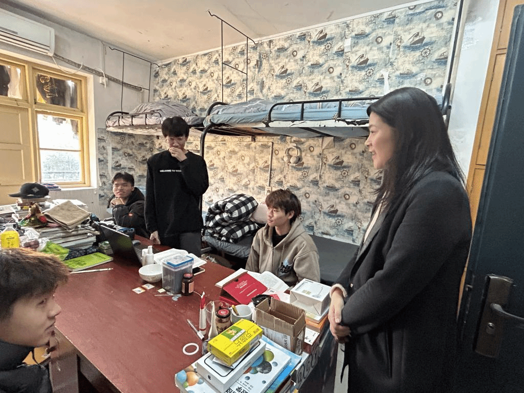 “天冷了要注意保暖,但也要注意寝室安全问题,不要使用大功率电器,人走电断。”“同学们未来的规划是什么?考研考公还是直接就业?”“这次考研顺利吗?想考哪里的大学?”句句浸着关怀与温暖的话语,让冬日的寒意驱散了不少。詹书记一行首先是来到20级学生寝室,对他们的未来发展意愿进行相关了解,并鼓励他们努力踏实追梦。在检查过程中,老师们认真负责并及时发现寝室不规范行为提出批评与教育,让检查活动落到实效。临近期末,詹书记也很关心学生复习情况,在检查的间隙,提醒学生应该投入期末复习,做到劳逸结合。