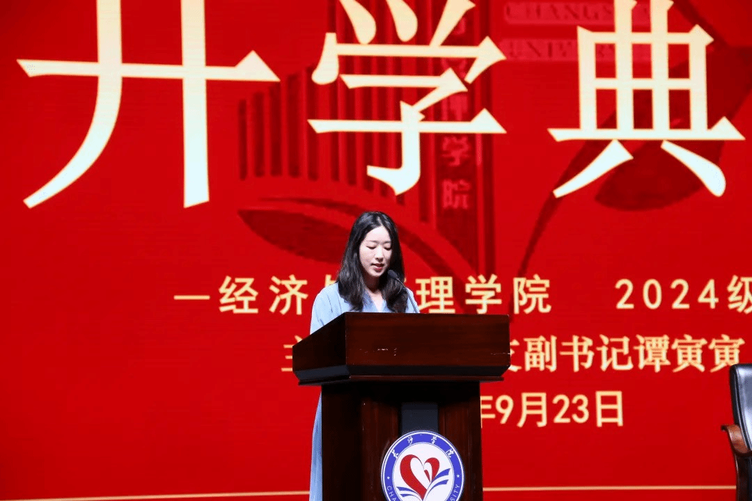 秋光为序,筑梦启航。2024年9月23日星期一上午8点,经济与管理学院在长沙学院学生活动中心大礼堂举办了2024级新生开学典礼。经济与管理学院校友、湖南联创控股集团有限公司总裁石俊,经济与管理学院领导班子,学院全体老师、 2024 级新生班主任、班导、教官以及 24 级全体新生共同参会。