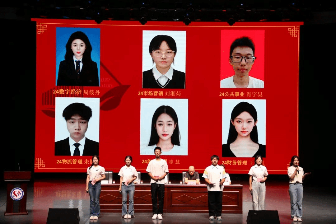24级数字经济专业周筱丹、市场营销专业刘湘菊、公共事业管理专业肖宇昊、物流管理专业朱熙、旅游管理专业陈慧、财务管理专业王霏儿六位同学作为新生代表发言,他们从“相信光”“追寻光”“成为光”三个层面表达了对大学生活的期盼,对专业的新认识,以及对自己的鼓励。他们表示一定会脚踏实地,珍惜在经管学院学习的每分每秒,用智慧和青春书写新的人生篇章。