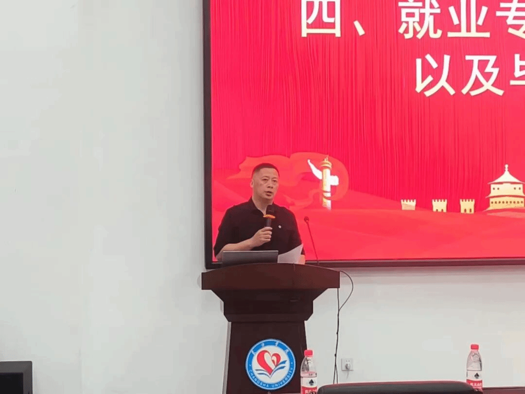 最后,贺鹏老师为大家梳理了未来一年考公、考研、招聘等就业事项的大致时间安排,介绍了三支一扶、西部计划等国家就业政策,详细说明了我校就业平台的网上签约操作流程和注意事项。