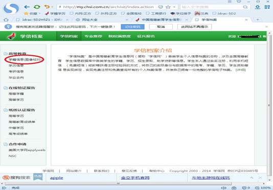 登录成功后,选择“高等教育信息”,点击学籍查询,认真核对姓名、出生日期、证件号码、学制、专业、学籍状态等个人学籍信息。学籍信息中系(所、函授站)、班号、学历照片为空,无需核对。