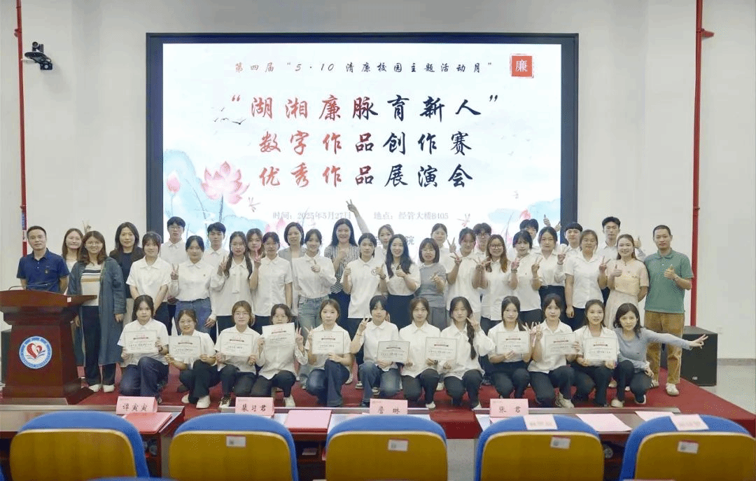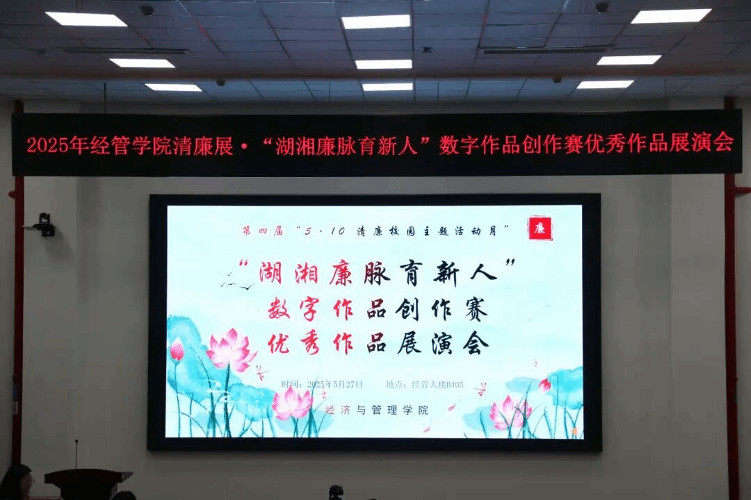 2025年5月27日下午2点30分,经济与管理学院在经管大楼B405举办“湖湘廉脉育新人”数字作品创作赛优秀作品展演会。