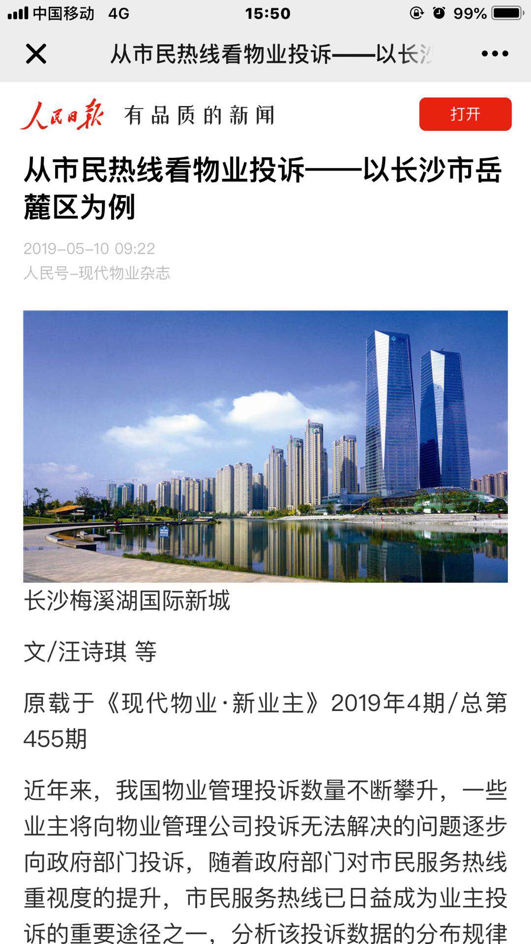 本文原标题为《物业管理投诉问题分布研究——以长沙市岳麓区市民服务热线为例》,同文作者还有刘心、夏诚、黄蕾、樊增甜。课题:长沙学院2018年大学生科技创新计划项目“政府介入物业管理投诉与处理问题研究 ——以长沙岳麓区12345市民服务热线为例”(编号60),感谢长沙市岳麓区住建局副局长付烈山、物业监管与维修自检管理办公室科长陈艳及相关工作人员对本课题的大力支持。