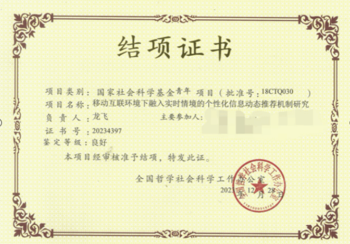 2023年全国哲学社会科学规划办公室公布了国家社科基金年度项目、青年项目和西部项目结项情况。我院刘飞跃教授、龙飞教授所主持的国家社科项目经过同行专家鉴定、国家哲学社会科学规划办公室终审验收,获良好结题。