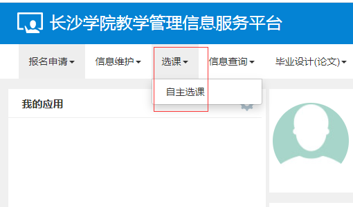 1.通过长沙学院网站首页找到信息门户,从信息门户进入教学管理信息服务平台(账号与密码是信息门户的账号与密码,账号密码问题请咨询网络中心),如下图。
